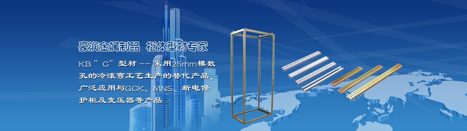 公司具有雄厚的技術力量、高層次的管理人才、強大的生產力和完善的質量跟蹤體系,主要產品有:十六折型材九折型材PS九折型材FA38/FA28型材KB"C"型材KS(8FM)型材等高低壓組裝式柜體結構型材及附件。